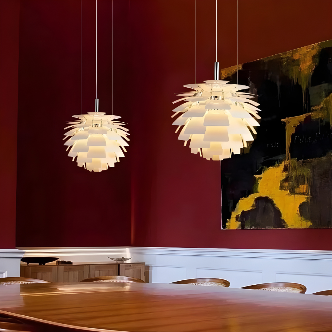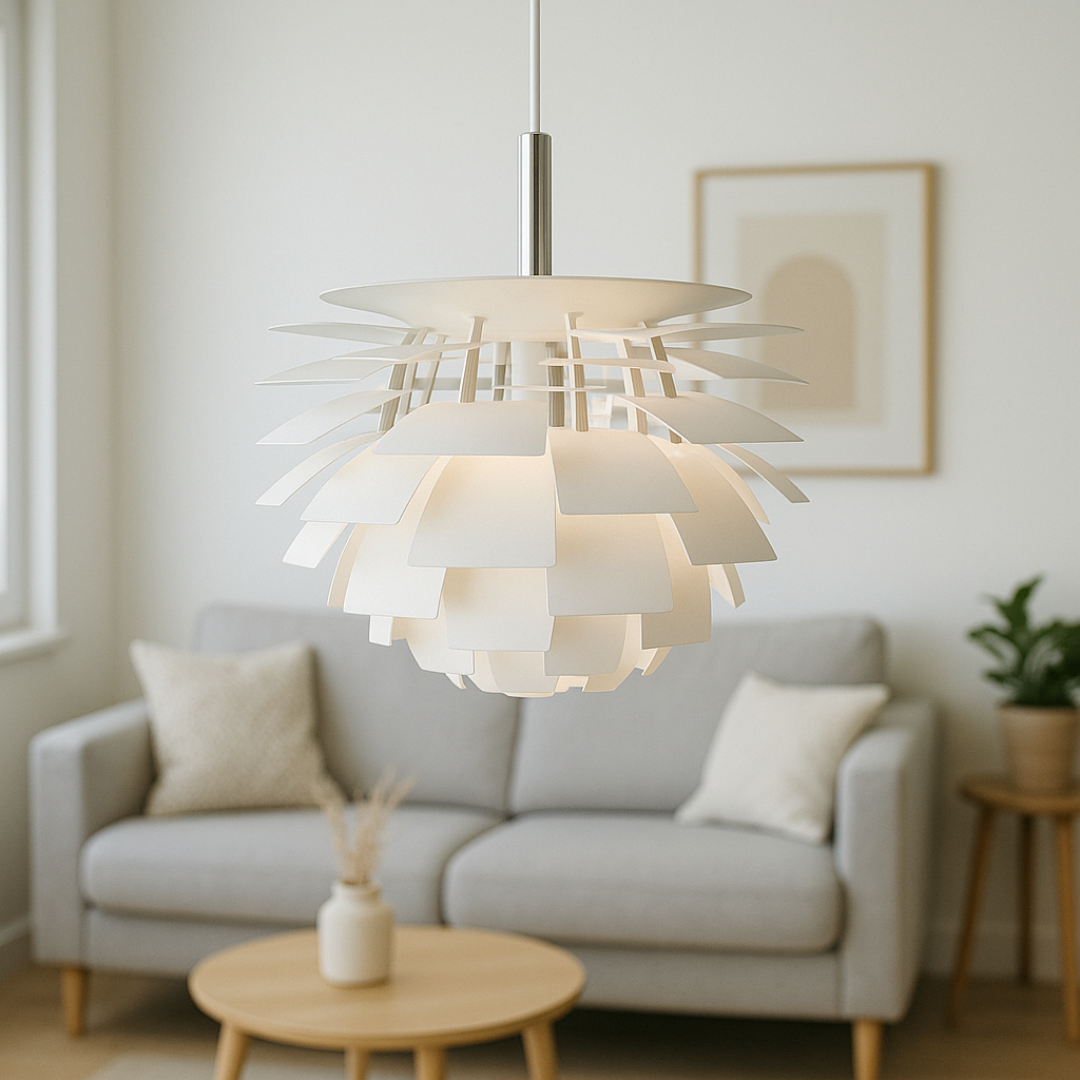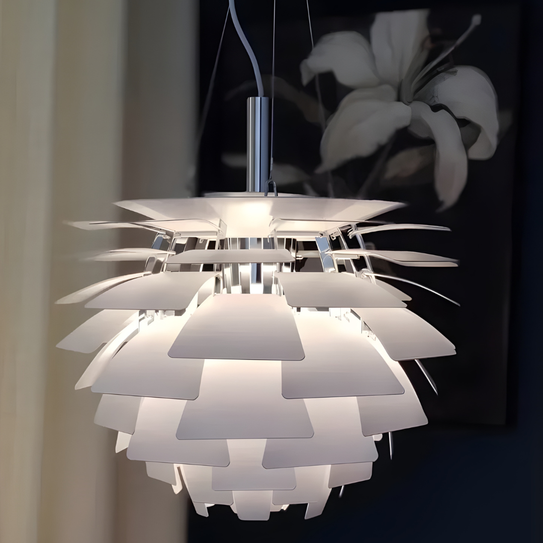 Hvert præcist formet panel spreder lyset jævnt og skaber en varm og behagelig atmosfære, der føles både moderne og tidløs.