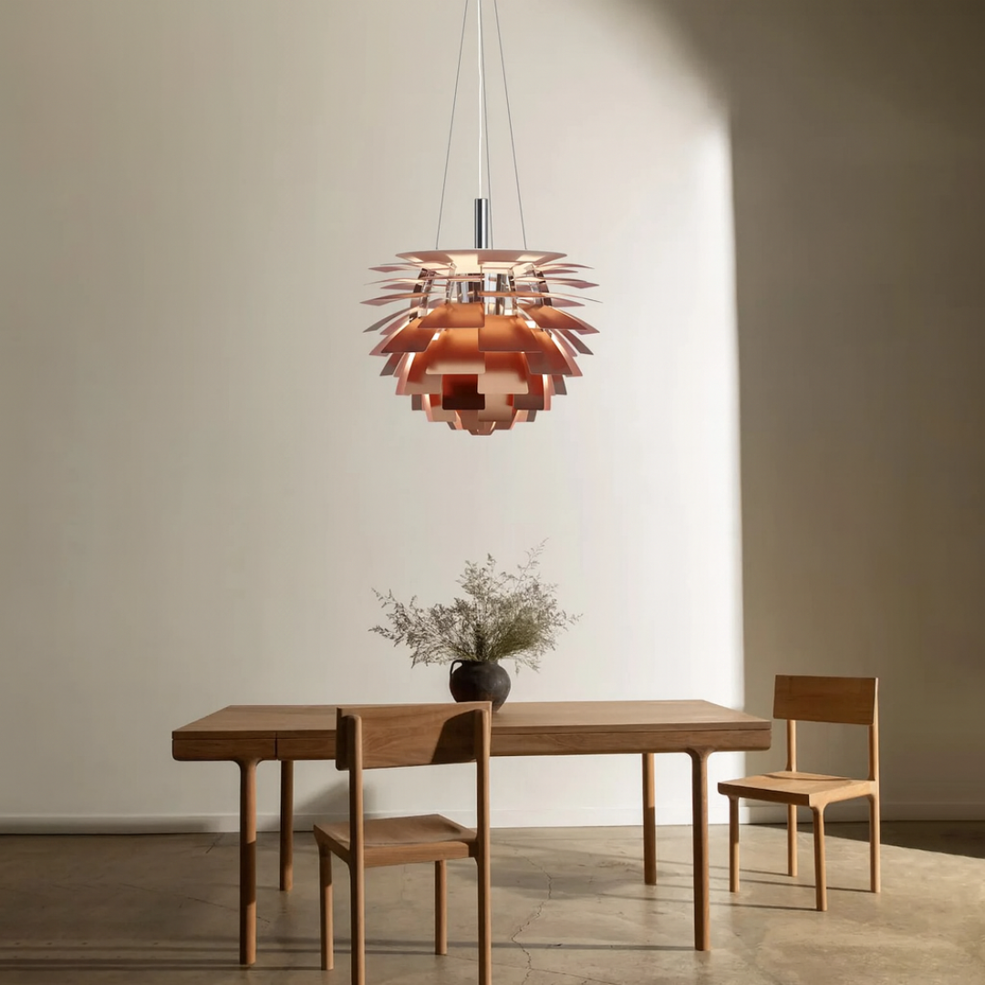 HausGlow Aurora Pine Pendel er en skulpturel designerlampe inspireret af ikonisk nordisk formsprog.