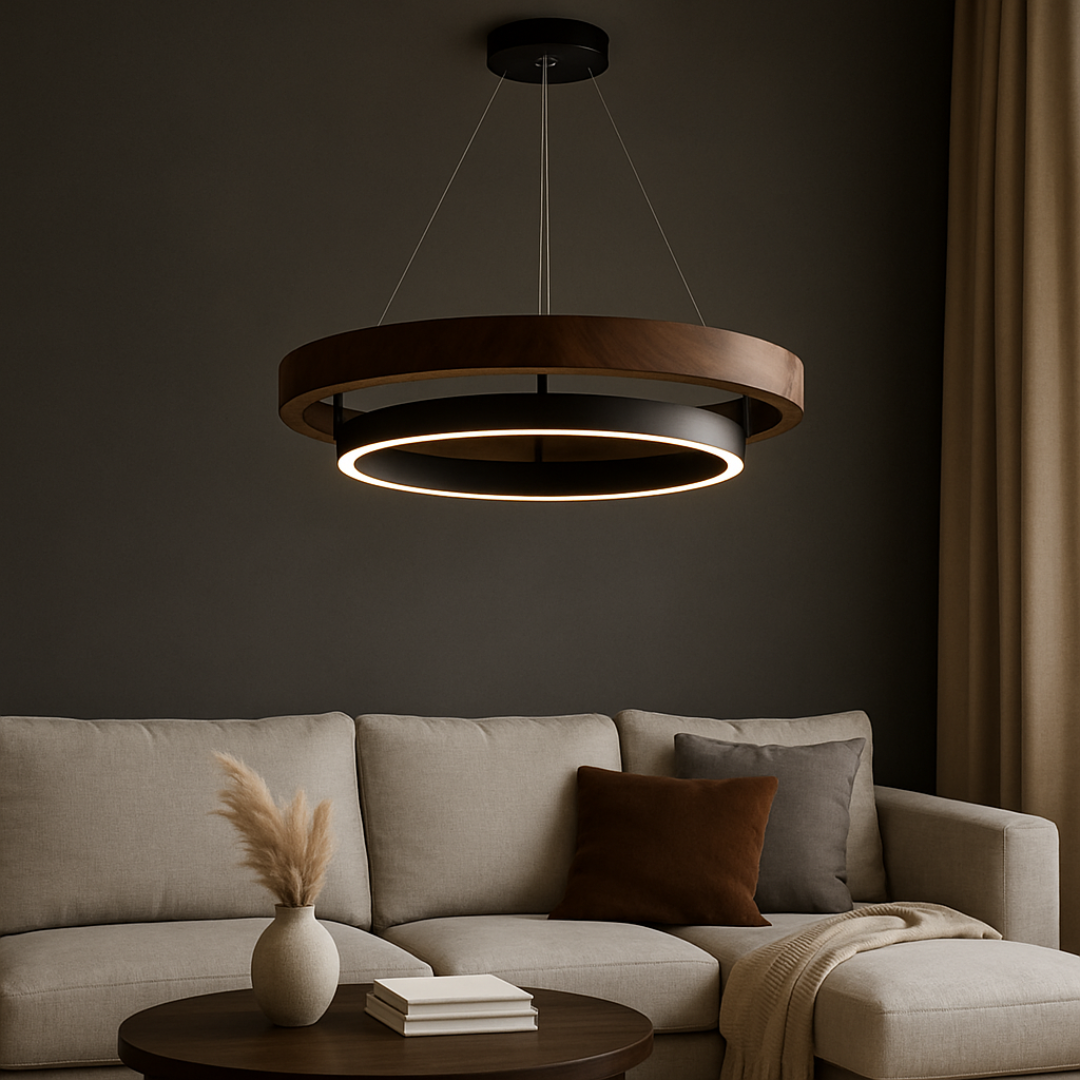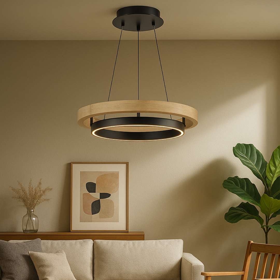 Skab en rolig og indbydende stemning med HausGlow Træring Pendel, designet til at tilføre varme og moderne elegance til dit hjem.