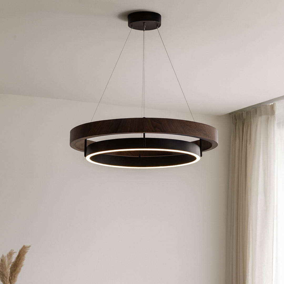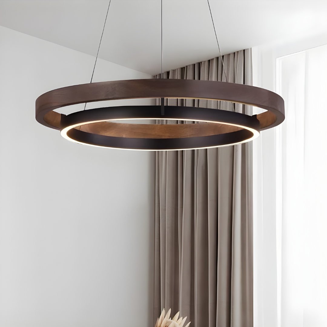 Den naturlige træfinish tilfører varme og balance til moderne indretninger, mens det minimalistiske ringdesign sikrer et let og stilrent udtryk.