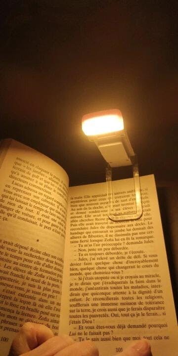 Det flimmerfri LED-lys er skånsomt for øjnene, mens den fleksible klemme passer til alle bogtykkelser.
